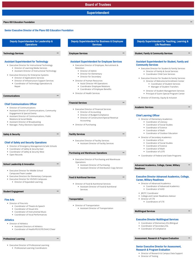 Now let’s look at the current Plano ISD Leadership Organizational Chart under Superintendent Williams: