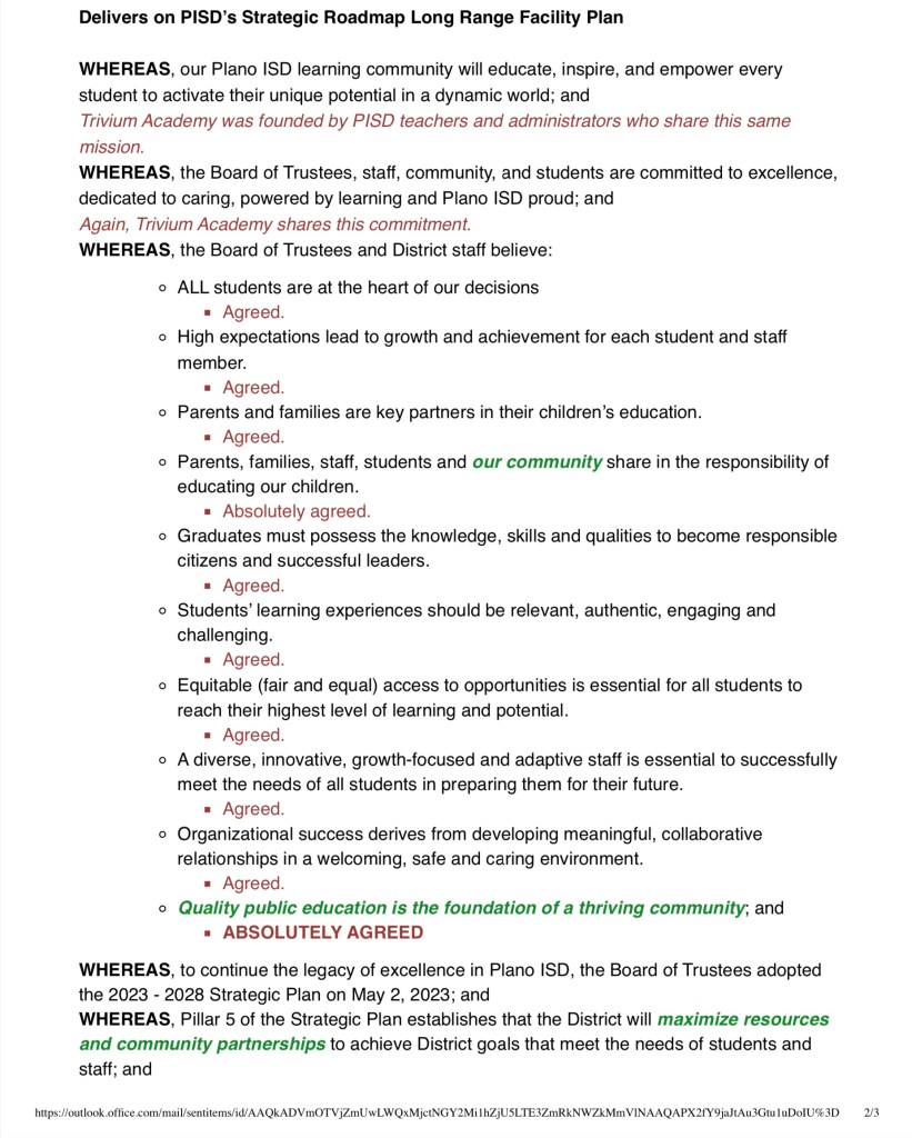 According to Trivium Academy Board Member Erica Tuscano, no one has ever responded to any of Trivium Academy’s inquiries. Tuscano expressed frustration that Plano ISD is “blatantly ignoring an opportunity to serve in the best interests of students AND taxpayers.”
