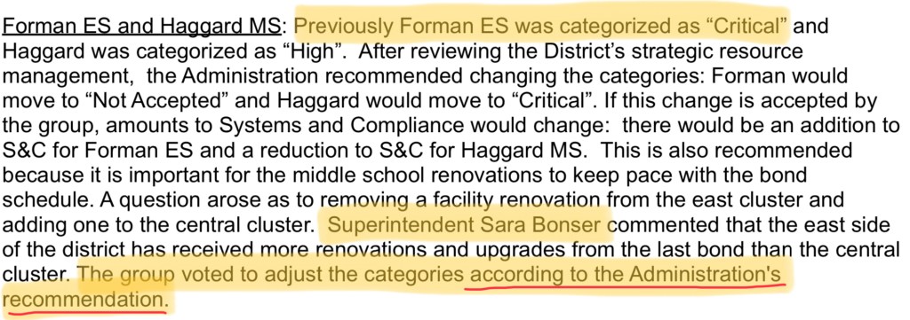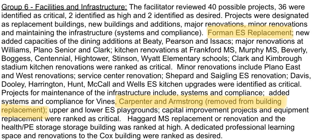 This implies Plano ISD knew it would be closing Forman Elementary School long before announcing it would even be looking to close schools. That Long Range Facility Planning committee was formed 17 months later to evaluate school closures.